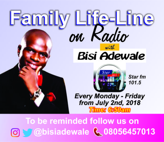 Renew and Re-brand your Family and relationship – Join Bisi Adewale on Family lifeline -Every Monday to Friday by 6:50 am on Star FM...