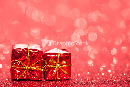 Decorated red holiday gifts