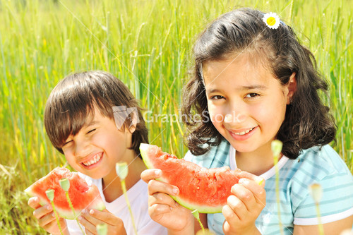 Eating watermelon outside