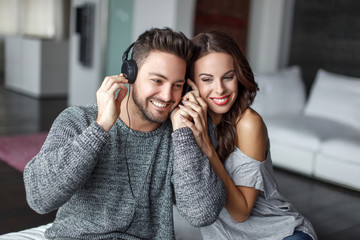 Free couple listen to music